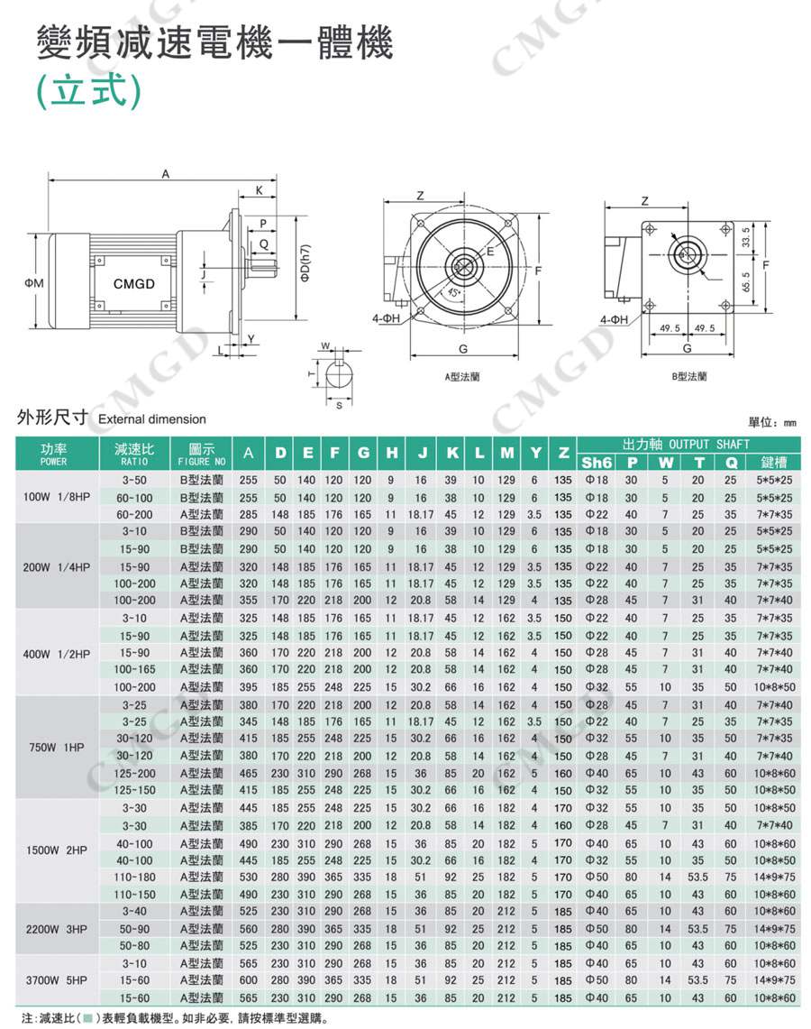 4、本公司所有電機均為鋁合材質ADC-12、減速箱1-3號本體采用鋁合金材質ADC-12,4-6號本體采用鑄鐵材質FC-20或灰鐵250